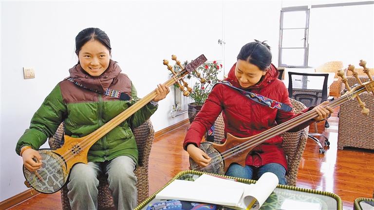 大學(xué)生志愿者在演示六弦琴彈奏。通訊員 王利軍 攝