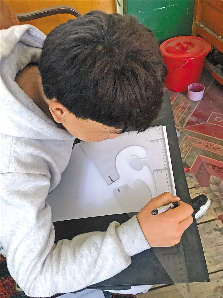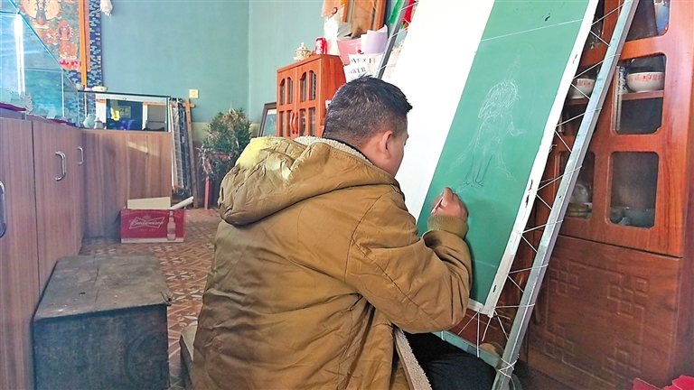 “那段時(shí)間是最難熬的,每天睜開眼除了吃飯,其他時(shí)間都在畫畫?!甭遄犯嬖V記者,當(dāng)他真正開始學(xué)習(xí)時(shí),才深刻體會(huì)到要想成為唐卡手藝人,需要付出更多努力。“也曾想過放棄,但還是咬咬牙堅(jiān)持了下來?!闭f到這里,洛追有些靦腆地笑了笑。