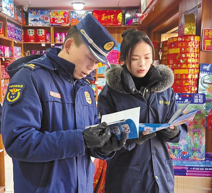 拉薩市消防救援支隊宣傳員走進煙花爆竹經(jīng)銷點,為店員科普易燃易爆場所消防安全知識。 通訊員 肖暄 攝