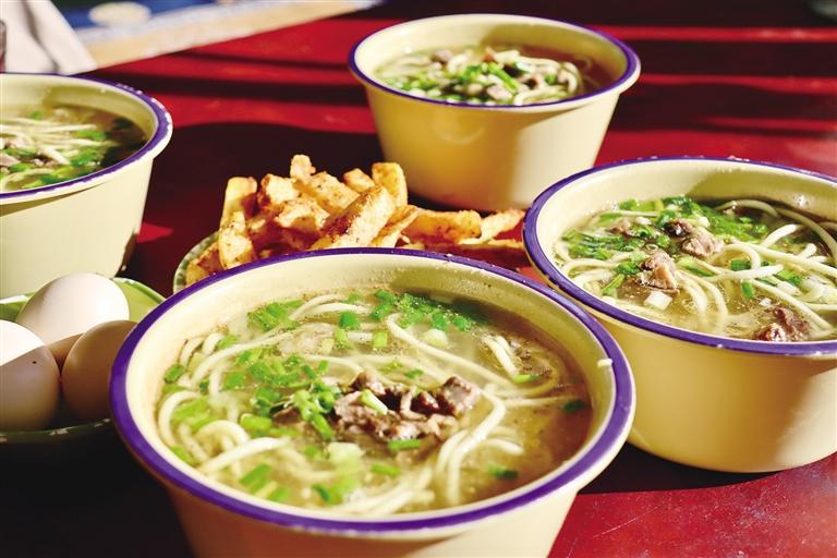 在西藏,人們總能將簡單的食材做出獨一無二的“西藏味道”。一壺甜茶,一碗藏面,一份炸土豆或肉餅,便是這里最標(biāo)準(zhǔn)的早餐套餐。清水、紅茶茶葉、甜奶粉或牦牛奶,只需簡單的食材,便能制作出茶香濃郁、奶味醇厚的甜茶。在略帶寒意的初春,喝上一口,整個身子都暖了起來。此時搭配一碗筋道的藏面,簡單又滿足。