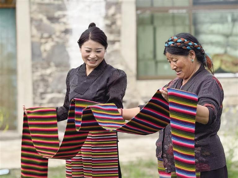 “好的技藝和原料是基礎(chǔ),創(chuàng)新的產(chǎn)品是敲門磚,走好這兩步,再打響知名度,我們的經(jīng)濟效益才能更上一層樓?!睘榱俗尭嗳肆私獍畹洌┰鲎扛聨е献魃绲漠a(chǎn)品頻繁亮相藏博會等平臺,用現(xiàn)場編織演示和文化講解,讓世界讀懂“彩虹圍裙”的故事。
