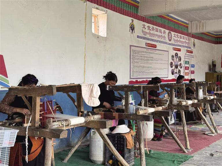 時光回溯到2002年,嘎日與格桑創(chuàng)立合作社時,僅靠12名村民手工編織傳統(tǒng)邦典,年銷售額不足10萬元?!澳菚r候連染料錢都要精打細算?!备氯栈貞浀馈?011年格桑去世后,13歲起就跟著母親學(xué)藝的旦增卓嘎接過重擔(dān)——合作社對她而言,是童年的記憶、是父母的心血,更是她的一方天地。