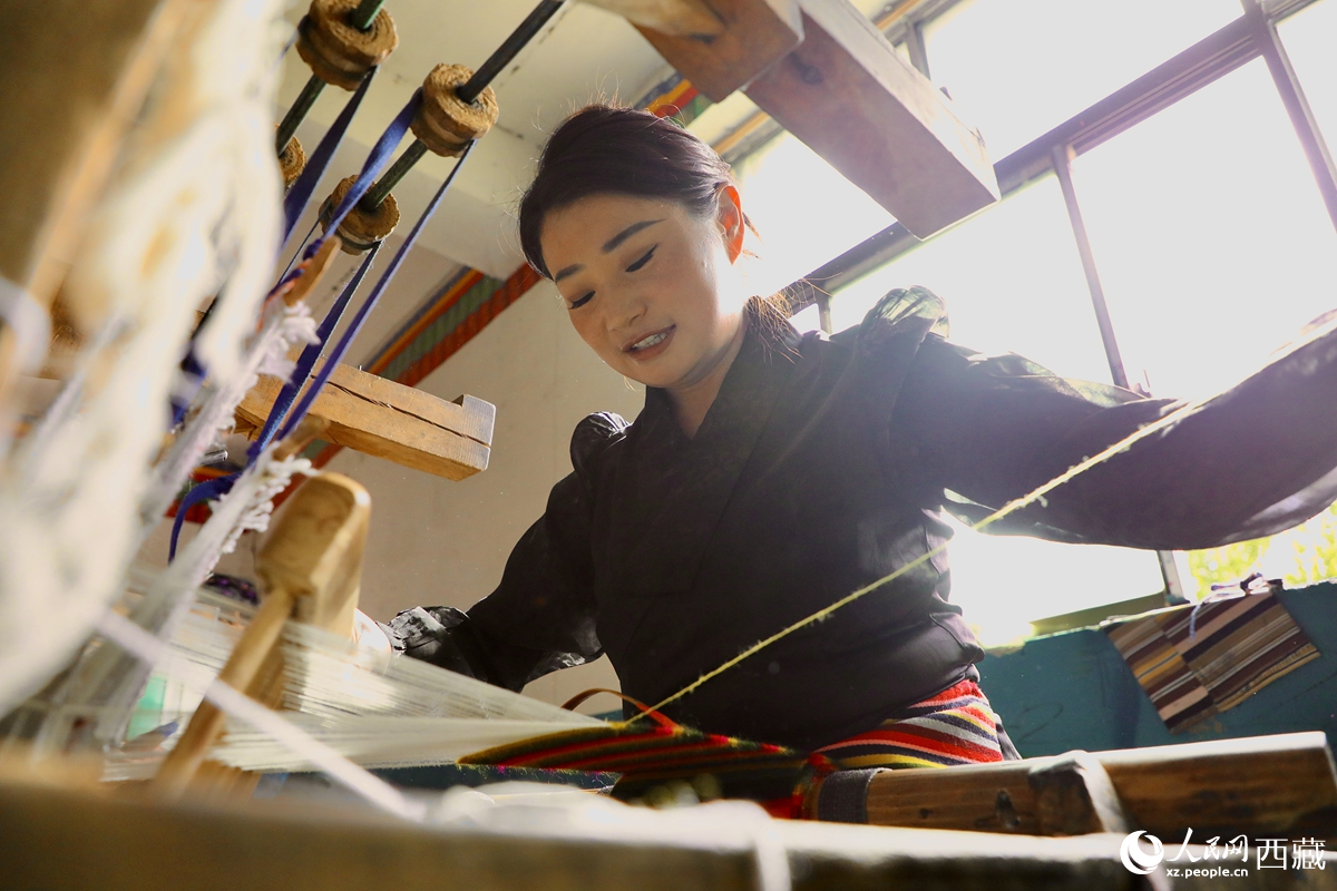 指尖起落中,編織機(jī)的“咔嗒”聲里,雅魯藏布江畔的晨光正將彩線、幸福與民族技藝,織進(jìn)新時代的斑斕畫卷。