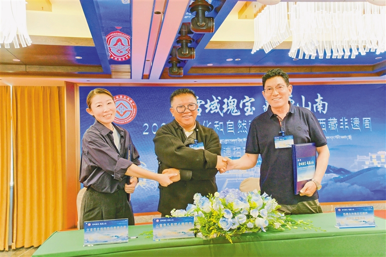 在全區(qū)非遺招商引資及項(xiàng)目簽約會(huì)上,4家企業(yè)負(fù)責(zé)人分別介紹公司發(fā)展歷程、市場(chǎng)前景、合作意向、未來(lái)計(jì)劃等情況。乃東區(qū)人民政府、乃東區(qū)文化和旅游局、西藏卓番林文化有限公司、北京依文服飾股份有限公司等一同簽訂了項(xiàng)目合作協(xié)議。