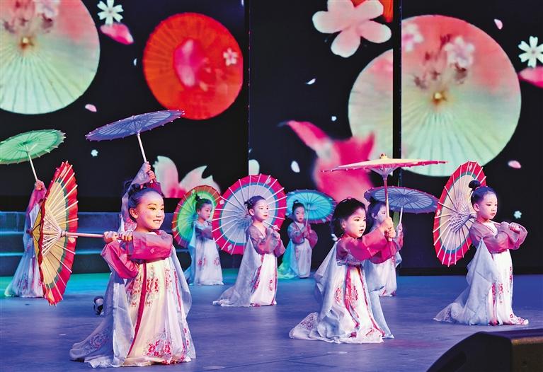 圖為拉薩市實驗幼兒園東城分園中班年級舞蹈隊表演的舞蹈《百舞驚鴻》。 記者 旦增蘭澤 攝