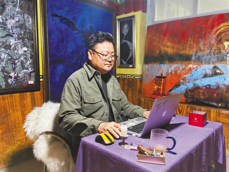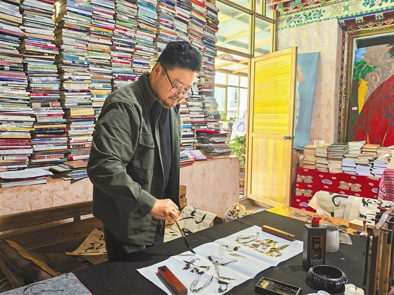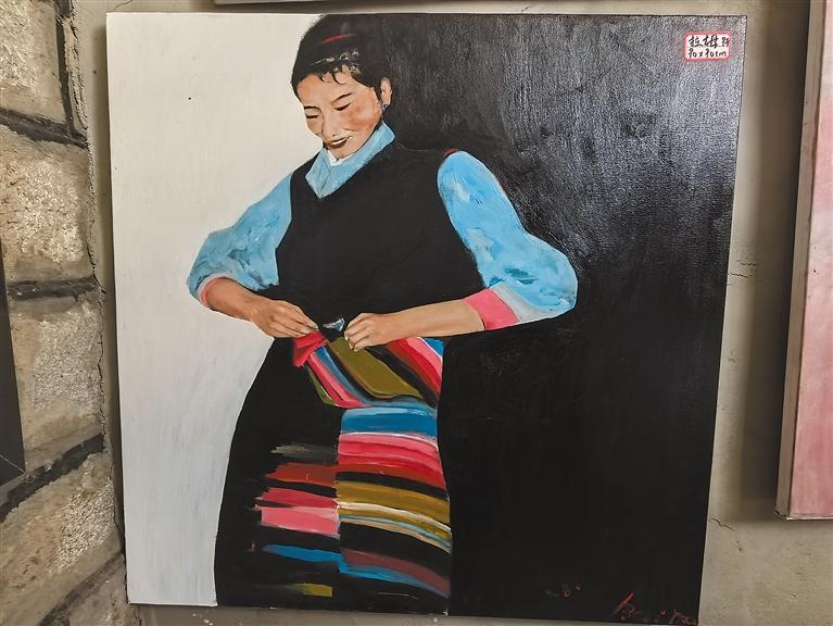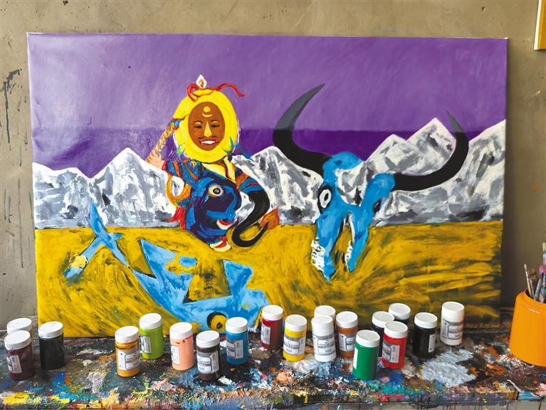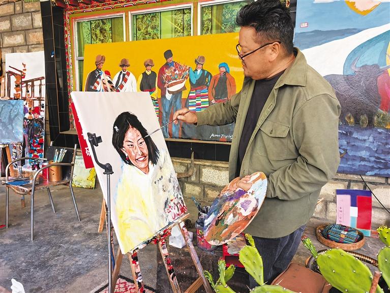 圖為白瑪次仁正在進(jìn)行創(chuàng)作。