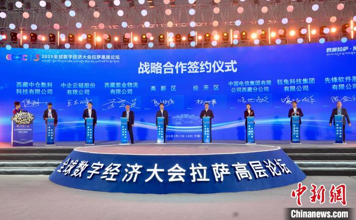 圖為2025全球數(shù)字經(jīng)濟大會拉薩高層論壇政企戰(zhàn)略合作簽約儀式現(xiàn)場?!〗懿?攝