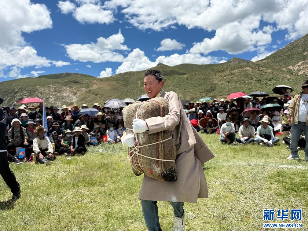 此次運動會集競技、文藝、特色產(chǎn)業(yè)展示于一體,亮點紛呈。拔河比賽中,參賽隊員齊心協(xié)力,觀眾吶喊助威,展現(xiàn)出團結奮進的精神風貌;抱沙袋、押加等傳統(tǒng)項目激烈角逐,卡乃村村民普布扎西奪得抱沙袋男子組冠軍,他激動地表示:“和大家一起拼搏奪冠,特別有意義!” ??