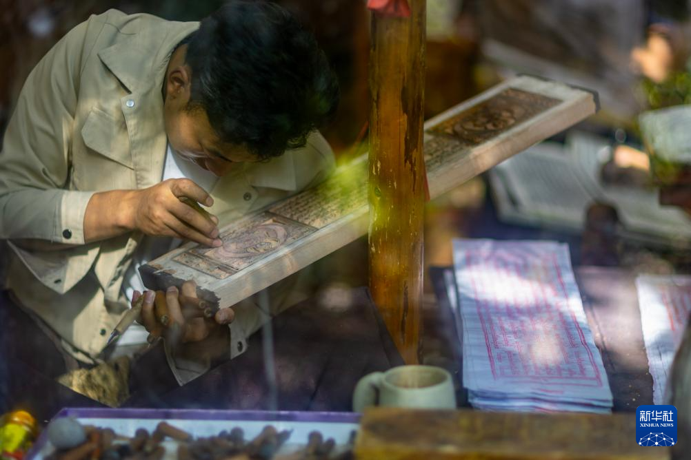 8月6日,雕刻師在工作中。西藏雪巴康雕版印刷制作技藝入選西藏自治區(qū)級非物質文化遺產代表性項目名錄。新華社記者 姜帆 攝 ??