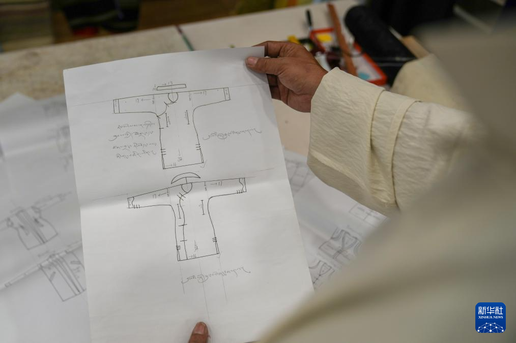 洛桑麥朗手繪的藏裝制作要領(8月15日攝)。新華社記者 晉美多吉 攝 ??