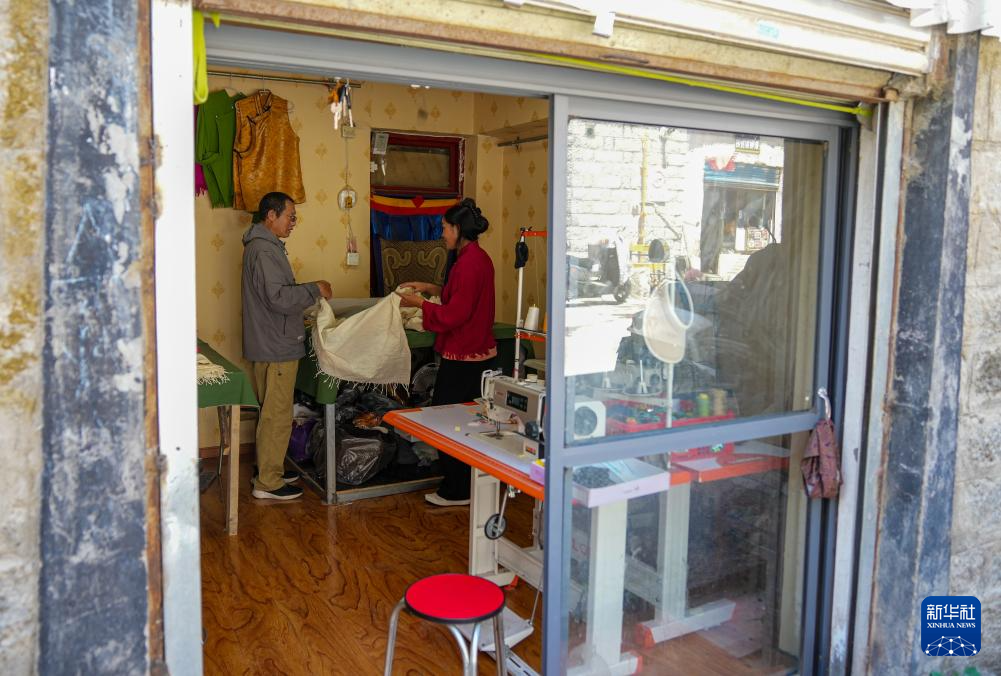 洛桑麥朗在檢查做好的藏裝(8月15日攝)。新華社記者 晉美多吉 攝 ??