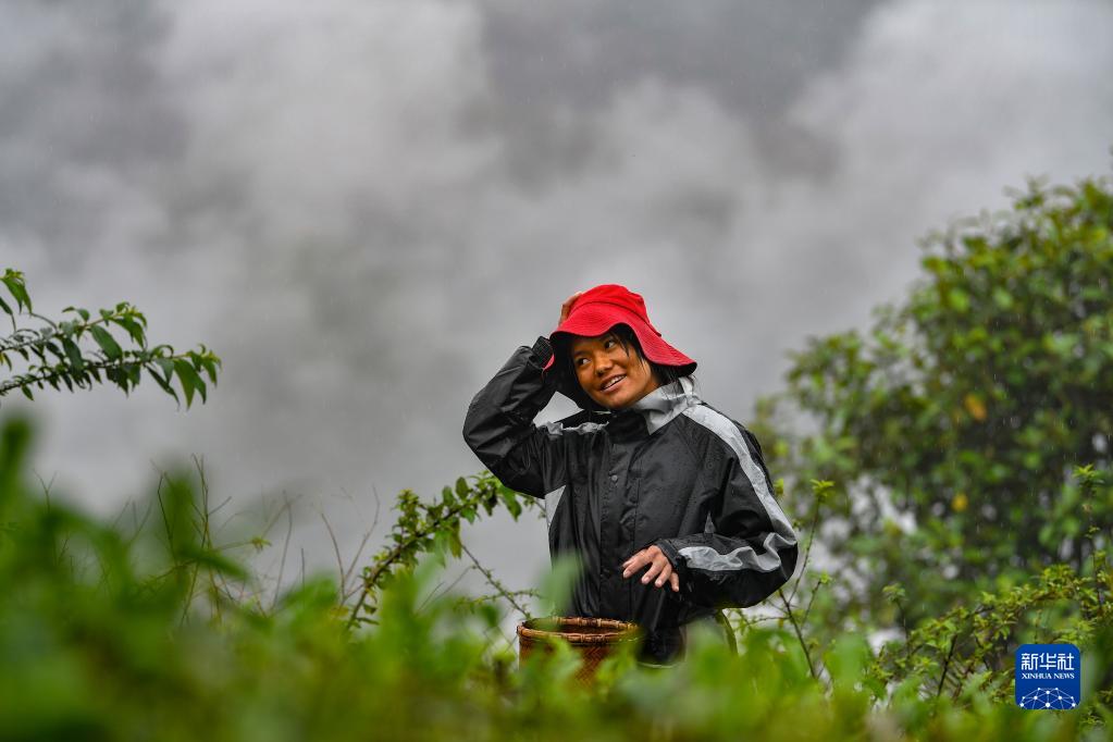 喜馬拉雅山脈深處,門巴族姑娘貢桑拉姆正在云霧繚繞的茶園里采摘茶青。她的雙手上下翻飛,將采摘下的茶葉放入竹條編織的筐中。