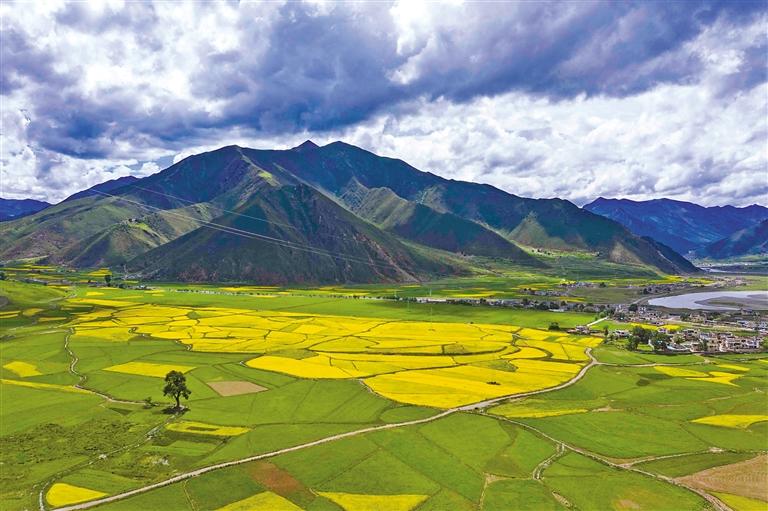 7月的墨竹,3萬多畝油菜花競(jìng)相綻放,匯成金色海洋,蜂蝶飛舞,花香四溢。