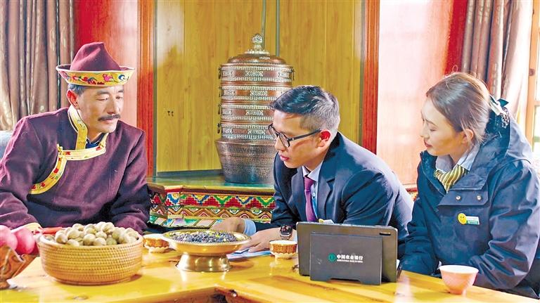 農行西藏分行基層員工為農戶提供上門服務。