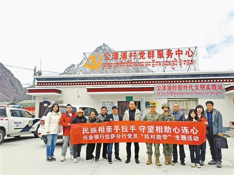 圖為興業(yè)銀行拉薩分行開展黨員“結(jié)對助學”主題活動時的合影。