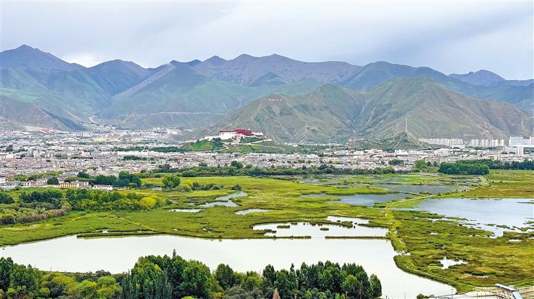 拉魯濕地有著“拉薩之肺”“天然氧吧”的美譽。站在觀鳥臺上,林地、湖泊、水鳥、城市融為一體,美不勝收。