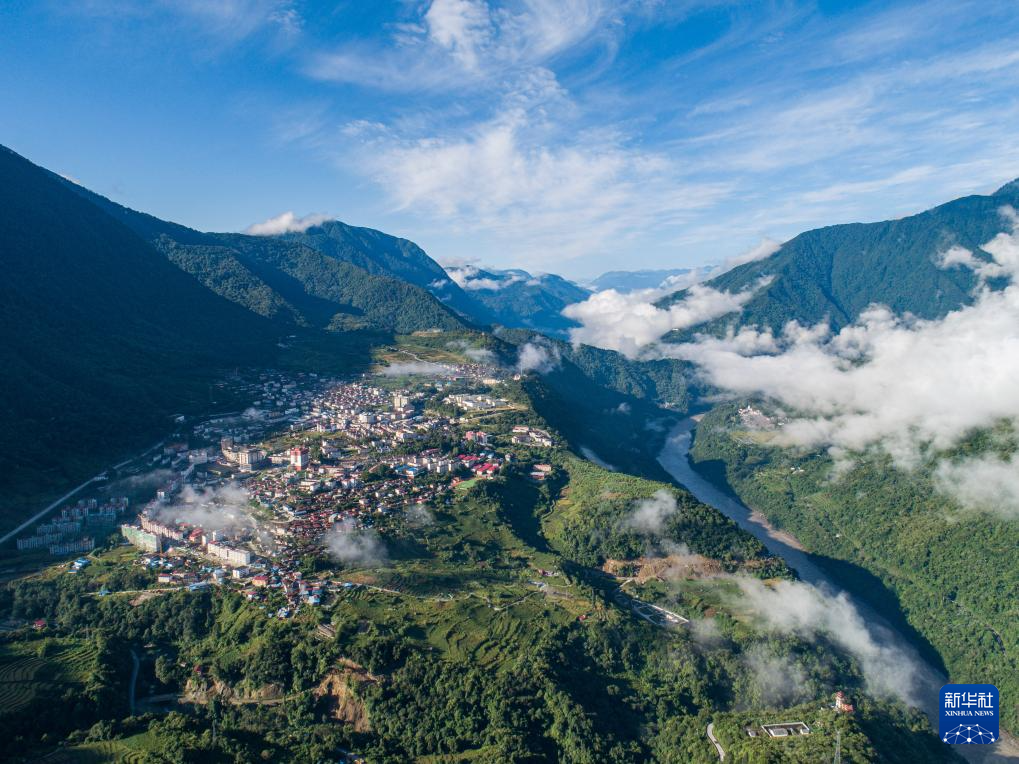 這是墨脫縣城(2023年10月13日攝,無(wú)人機(jī)照片)。新華社記者 孫非 攝