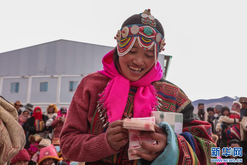 西藏阿里茶措村 牧民笑顏領(lǐng)分紅