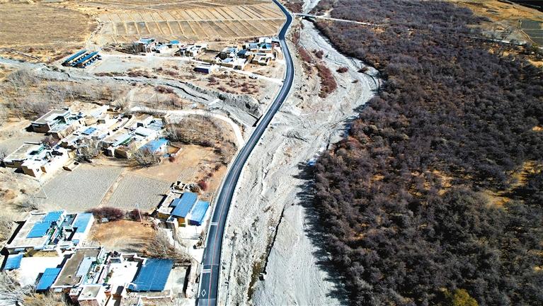12月12日,山南市瓊結(jié)縣拉玉鄉(xiāng)鄉(xiāng)村旅游公路拓寬工程項目通車儀式在拉玉鄉(xiāng)白那村舉行。該公路長度為10.18公里,路基寬度為7.5米,屬于三級公路,總投資3500萬元。這條鄉(xiāng)村旅游公路的建成通車,不僅方便周邊村民出行,同時對開發(fā)當?shù)剜l(xiāng)村旅游資源具有重要價值。 拉玉鄉(xiāng)鄉(xiāng)村旅游公路(無人機照片)。本報記者 白瑪澤旺 攝