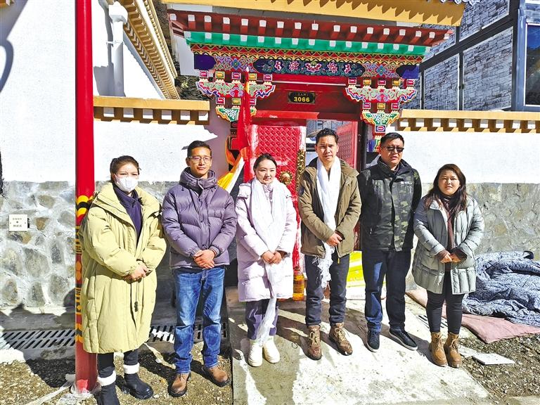 圖為搬遷群眾達瓦次仁一家與工作人員在新家門前合影留念。記者 武沛濤 攝