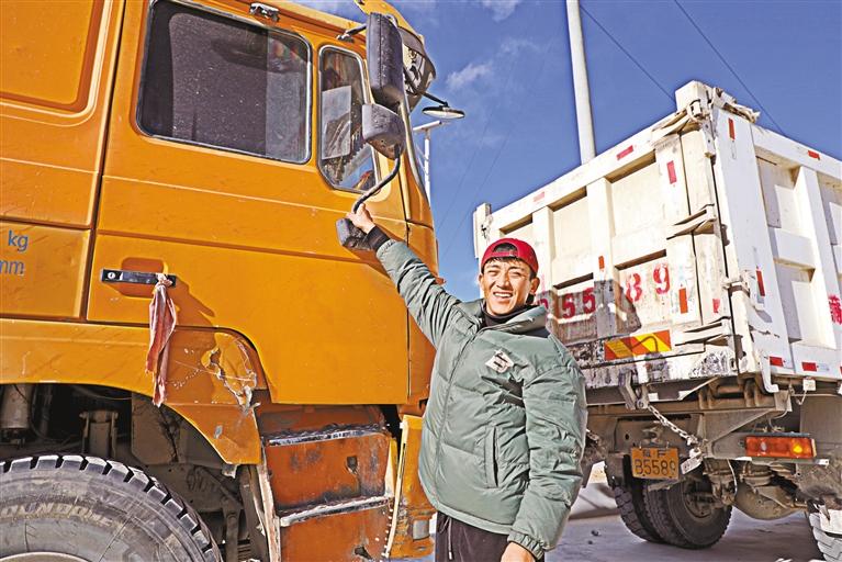 圖為村民格桑平措和他的運(yùn)輸車。 記者 洛桑旦增 達(dá)珍 攝