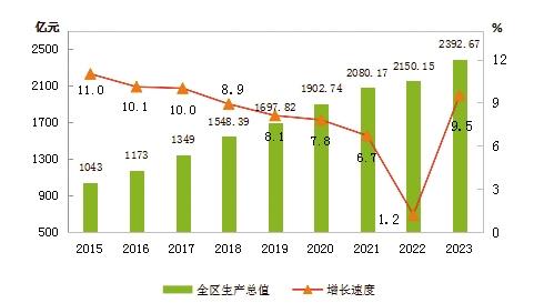 圖1 2015-2023年全區(qū)生產(chǎn)總值及其增長速度