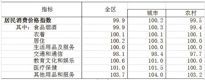 全年全區(qū)居民消費價格比上年下降0.1%,工業(yè)生產(chǎn)者出廠價格上漲1.1%。