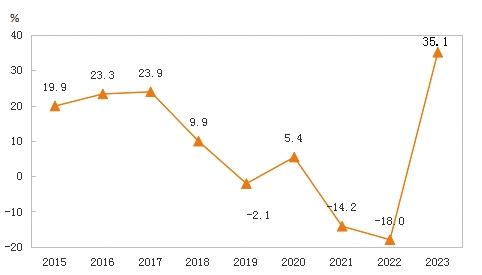 圖5 2015-2023年全社會固定資產(chǎn)投資增長速度