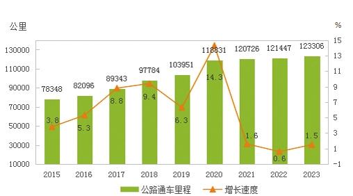 年末公路總通車里程123306公里,比上年增加1859公里。其中有鋪裝路面總里程52789公里。