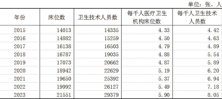 表4 衛(wèi)生機構(gòu)床位數(shù)和技術人員數(shù)