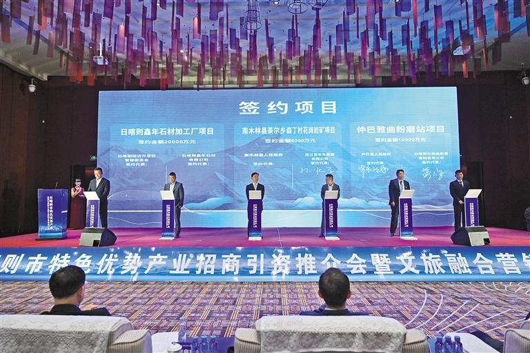 5月27日,日喀則市特色優(yōu)勢(shì)產(chǎn)業(yè)招商引資推介會(huì)暨文旅融合營(yíng)銷推廣會(huì)舉行。推介會(huì)上成功簽約21個(gè)項(xiàng)目,協(xié)議投資額45.53億元。