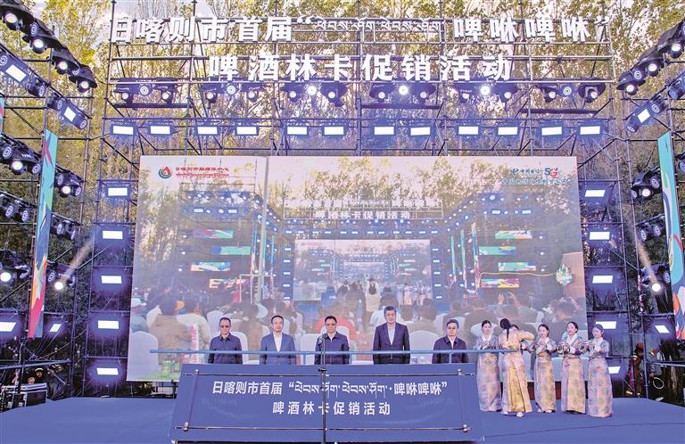 圖為日喀則市首屆“啤咻啤咻”啤酒林卡促銷活動(dòng)啟動(dòng)儀式。