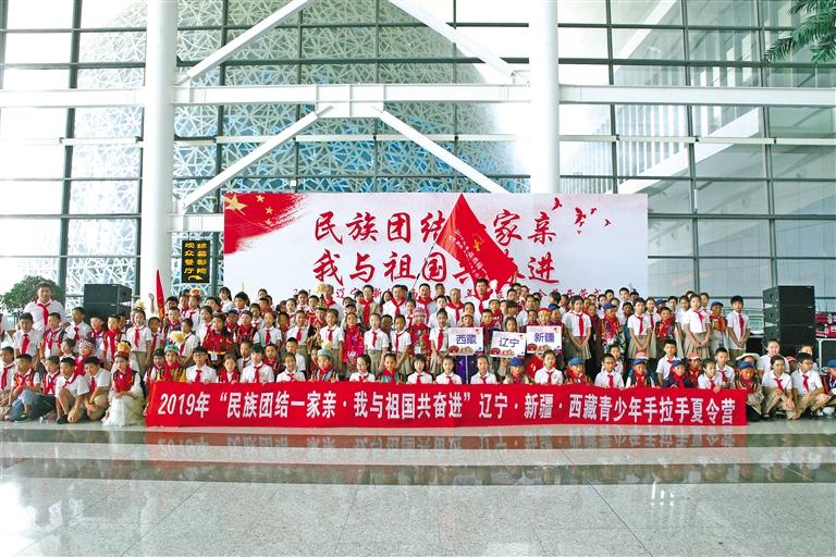 2019年“民族團結一家親·我與祖國共奮進”遼寧·新疆·西藏青少年手拉手夏令營開營儀式現(xiàn)場。