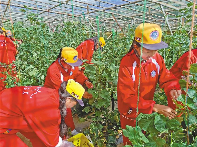 鞍山市援建的巴青縣中學勤工儉學實踐基地內,學生在采摘。