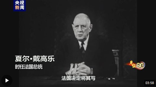 時(shí)任法國總統(tǒng) 夏爾·戴高樂:“法蘭西共和國決定將其與中華人民共和國的關(guān)系提升到正常的外交關(guān)系層面。”