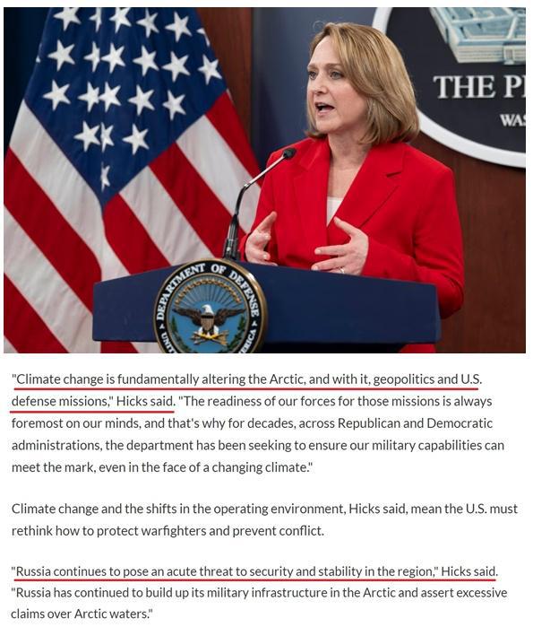 在發(fā)布這份文件時,美國國防部副部長??怂乖诤唸髸瞎宦暦Q,俄羅斯對北極地區(qū)的安全與穩(wěn)定構(gòu)成"嚴重威脅"。為此,美國必須制定戰(zhàn)略并確保美軍做好準備,以減輕在北極地區(qū)發(fā)生潛在突發(fā)事件的風(fēng)險。