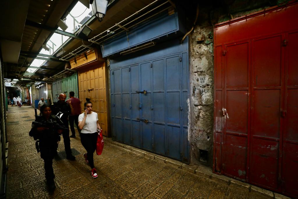 7月31日,在耶路撒冷老城,行人經過關門的店鋪。當日,耶路撒冷老城商戶舉行罷市,抗議哈馬斯領導人伊斯梅爾·哈尼亞遇襲身亡。新華社發(fā)(賈馬爾·阿瓦德攝)