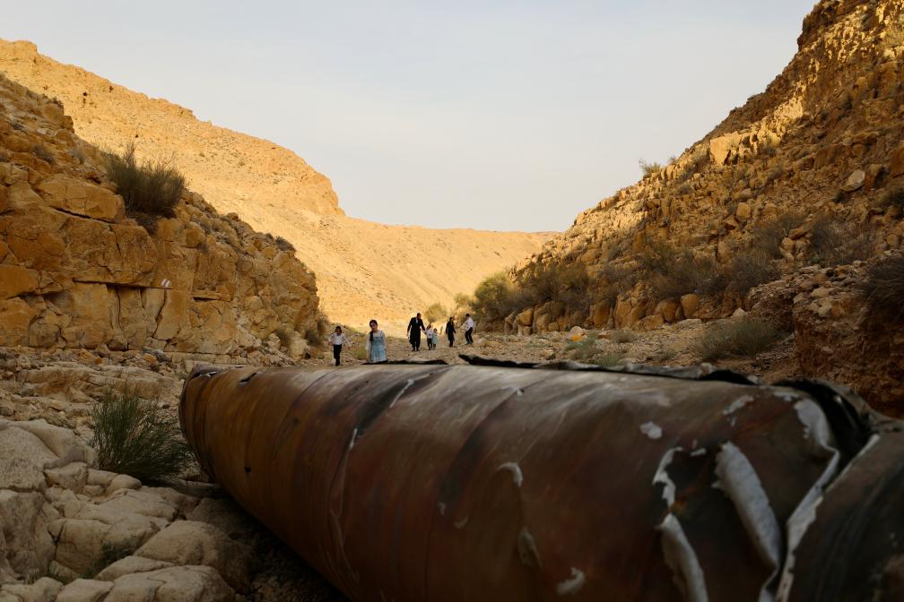 這是4月28日在以色列南部城市阿拉達附近拍攝的伊朗導彈殘骸。新華社發(fā)(賈馬爾·阿瓦德攝)