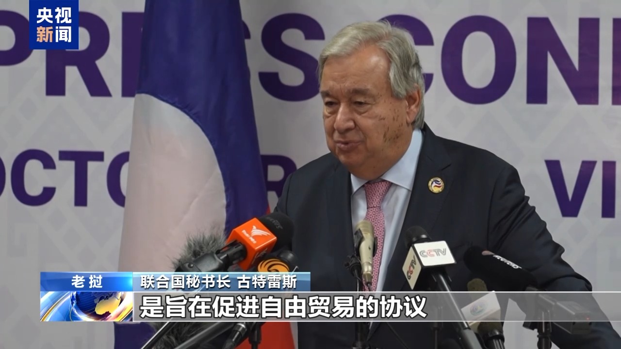 聯(lián)合國(guó)秘書(shū)長(zhǎng)古特雷斯在回答總臺(tái)記者提問(wèn)時(shí)贊賞中國(guó)—東盟自貿(mào)區(qū)3.0版,表示此次升級(jí)將促進(jìn)全球自由貿(mào)易和經(jīng)濟(jì)增長(zhǎng)。
