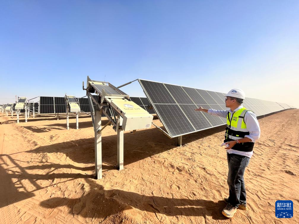 充沛的光照讓埃及具備得天獨(dú)厚的光伏發(fā)電條件。本班光伏產(chǎn)業(yè)園占地面積37平方公里,規(guī)劃建設(shè)40座太陽(yáng)能發(fā)電廠,總裝機(jī)容量約2千兆瓦,目前已有32座發(fā)電廠建成并投入運(yùn)營(yíng)。廣袤的撒哈拉沙漠中,高高架起的光伏板像棋盤格一樣鋪展開,從高處俯瞰猶如藍(lán)色海洋。光伏板跟隨太陽(yáng)的位置調(diào)整角度,炙熱的陽(yáng)光被源源不斷轉(zhuǎn)化為電力能源。