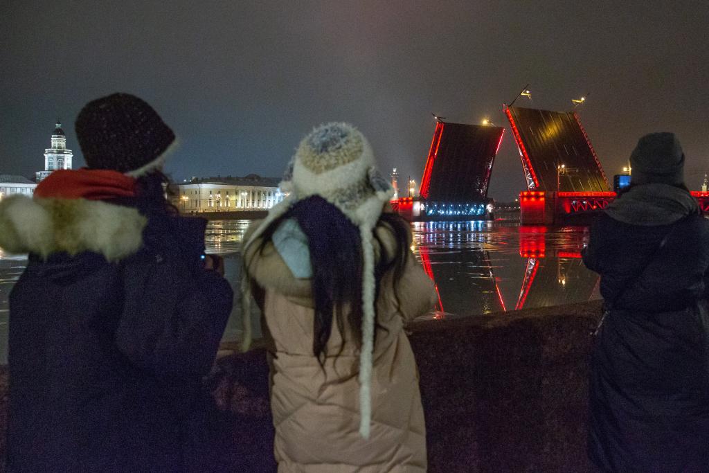 按照當?shù)貍鹘y(tǒng),涅瓦河上的多座橋梁只在每年4月至11月通航季定時開合,以便大型船只通航。“這是圣彼得堡首次為外國節(jié)日開橋,特別獻給我們的中國朋友?!笔ケ说帽な袑ν怅P(guān)系委員會主席格里戈里耶夫說。