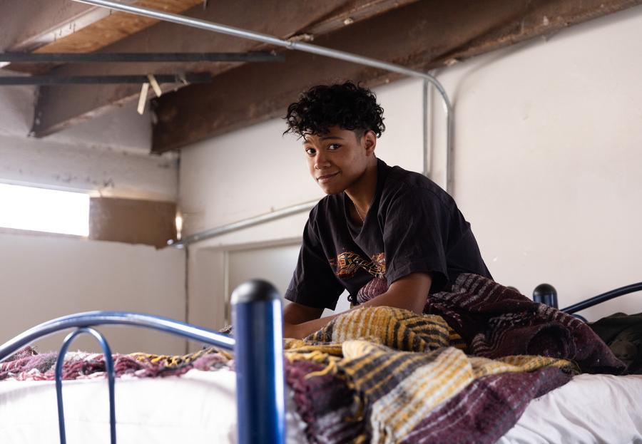 2025年2月2日,在墨西哥奇瓦瓦州華雷斯城的一處移民收容所,一名少年在休息。新華社記者 李夢(mèng)馨 攝