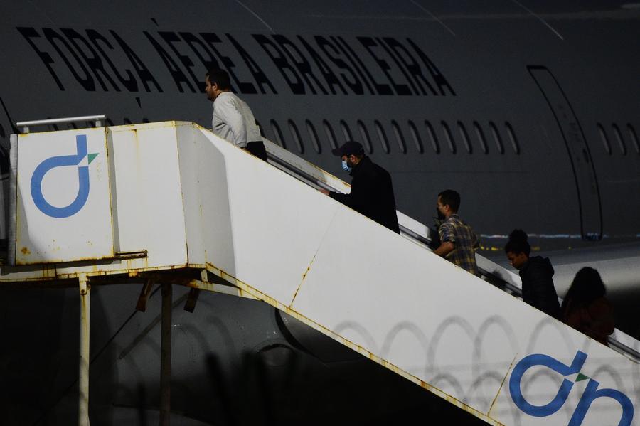 2025年2月7日,在巴西東北部塞阿拉州福塔萊薩市,被美國(guó)驅(qū)逐出境的第二批巴西非法移民登上一架巴西空軍飛機(jī)。新華社發(fā) 盧西奧·塔沃拉 攝