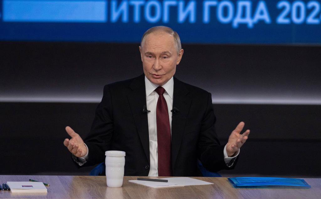 2024年12月19日,在俄羅斯首都莫斯科,俄羅斯總統(tǒng)普京在“年度盤點(diǎn)”活動上講話。新華社記者白雪騏攝