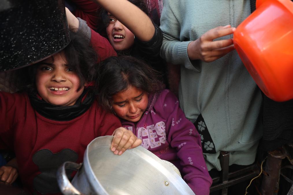 3月22日,在加沙地帶北部拜特拉希耶,女孩在領(lǐng)取救助食物時(shí)哭泣。新華社發(fā)(馬哈茂德·扎基攝)