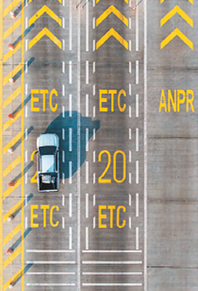 汽車駛過柬埔寨金港高速金邊收費(fèi)站(無(wú)人機(jī)照片)。張金加攝(新華社發(fā))