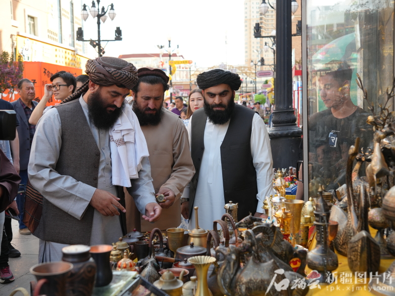 訪華團(tuán)漫步在新疆國際大巴扎。石榴云/新疆日報(bào)記者 閆嘯天攝
