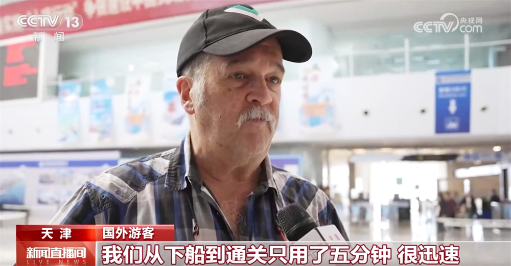 國(guó)外游客稱:“這是我第二次來(lái)中國(guó),每個(gè)人都很友善。我們來(lái)是為了度假,我們從下船到通關(guān)只用了五分鐘,很迅速?!?/p>