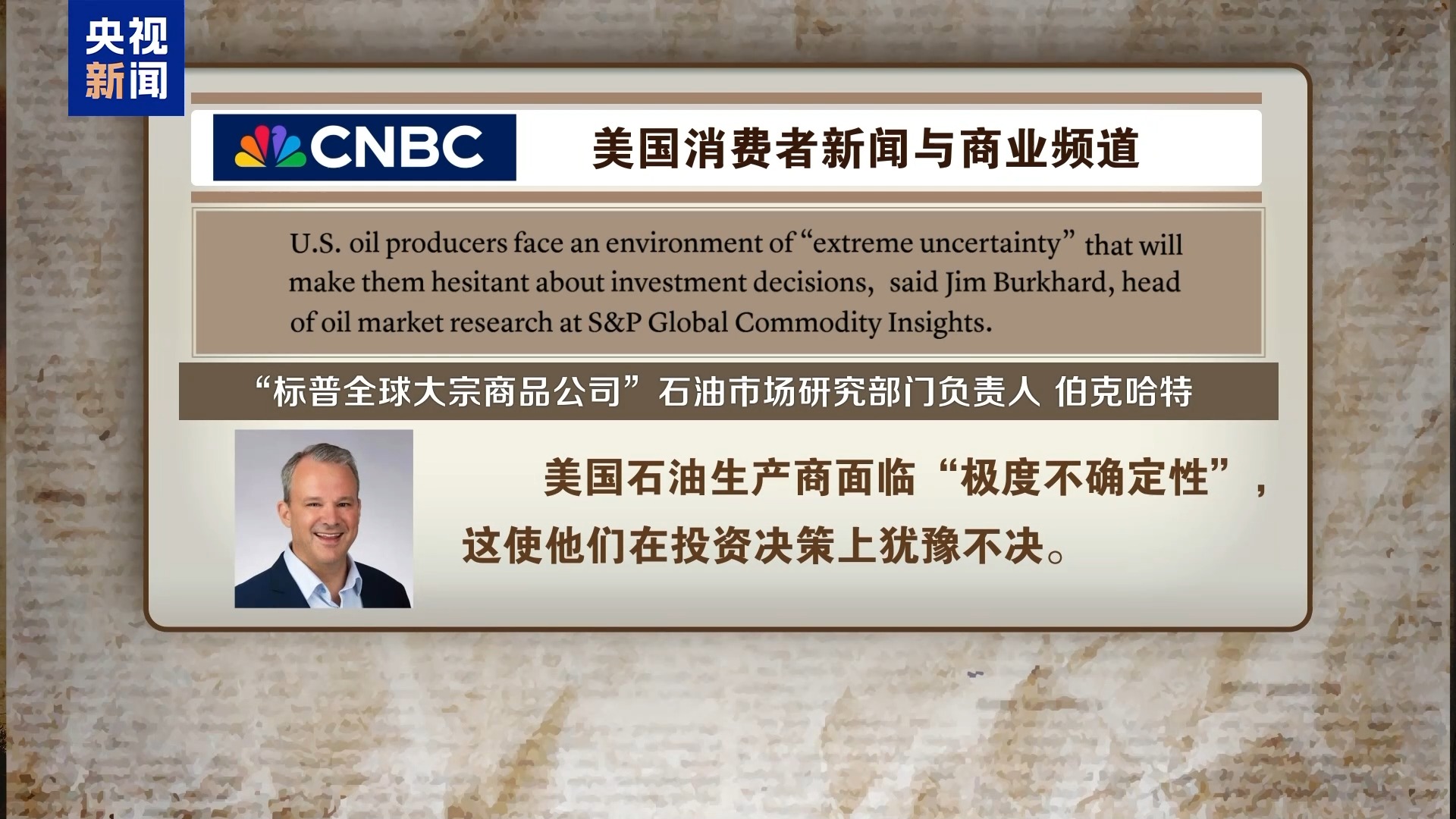 美國消費(fèi)者新聞與商業(yè)頻道援引“標(biāo)普全球大宗商品公司”石油市場研究部門負(fù)責(zé)人伯克哈特的話報(bào)道稱,美國石油生產(chǎn)商面臨“極度不確定性”,這使他們在投資決策上猶豫不決。