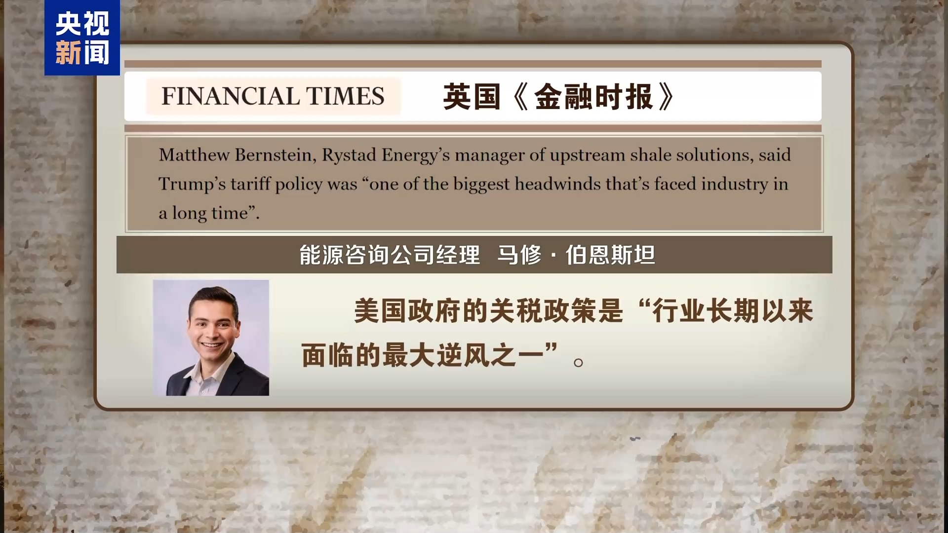 據(jù)報(bào)道,美國政府濫施關(guān)稅損害了美國石油生產(chǎn)商的利益,尤其是他們使用的設(shè)備大多是從中國、韓國、巴西和墨西哥進(jìn)口的。報(bào)道援引一家行業(yè)咨詢公司的研究稱,美國石油行業(yè)所用管材的價(jià)格預(yù)計(jì)在今年第四季度將同比上漲40%。美國“二疊紀(jì)盆地石油協(xié)會(huì)”前主席柯克·愛德華茲直言,他對(duì)美國石油和天然氣行業(yè)“在整個(gè)關(guān)稅計(jì)劃中被當(dāng)作替罪羊”表示難以置信。